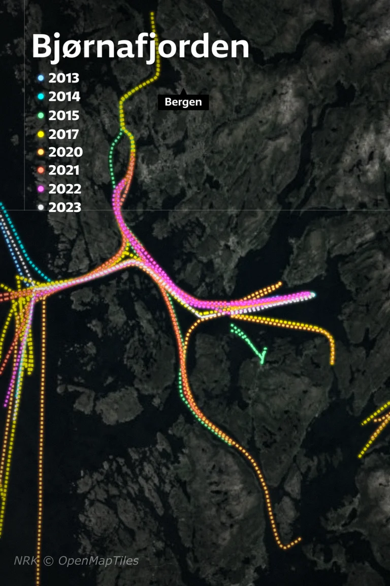 What about the tracks outside Våge, providing justification for NRK’s claim that “some vessels are speeding back and forth” in the Bjørnafjord? Is there an explanation for these tracks?